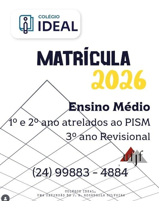Oportunidade única no Colégio Ideal! Garanta sua vaga em um Ensino Médio que alia preparação máxima para ENEM e PISM com a formação de cidadãos conscientes e autores da própria história.