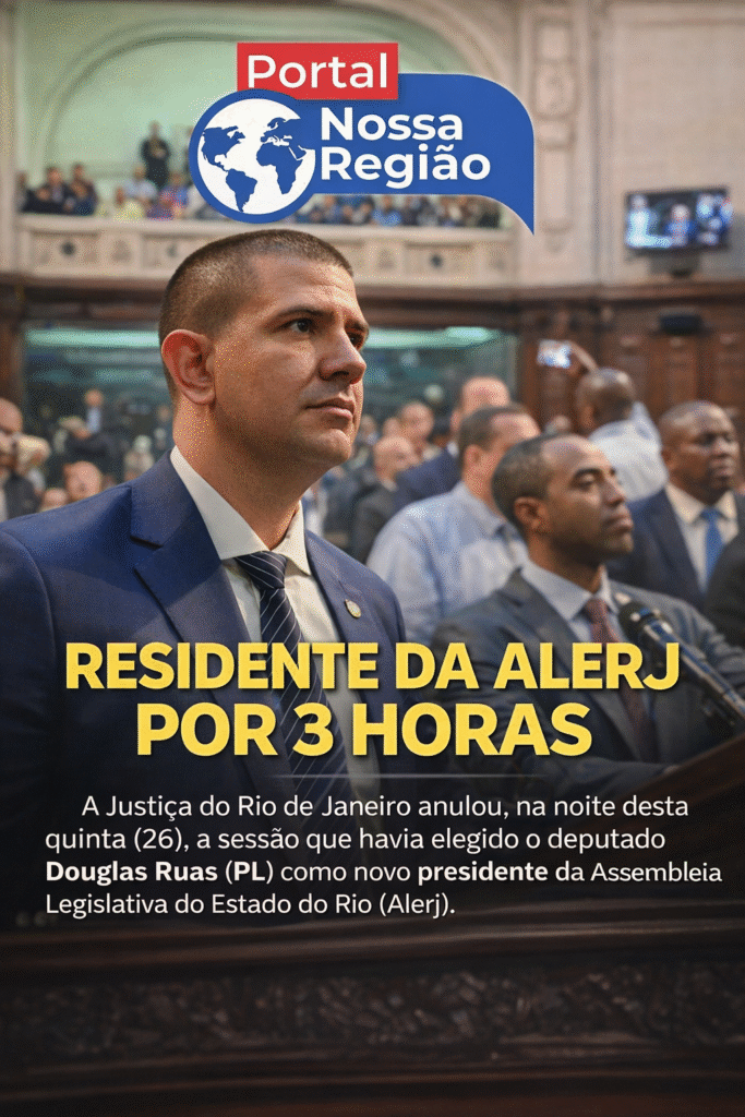 O que deveria ser o início de uma nova era na Assembleia Legislativa do Estado do Rio de Janeiro (Alerj) transformou-se em uma batalha jurídica sem precedentes. Na noite desta quinta-feira (26), a Justiça do Rio de Janeiro anulou oficialmente a sessão que havia eleito o deputado Douglas Ruas (PL) como presidente da casa para o próximo biênio.