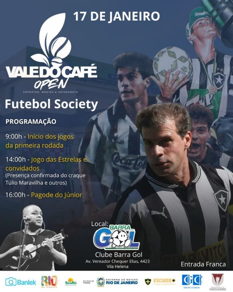O torneio promete reunir equipes da região em disputas acirradas no futebol society, modalidade cada vez mais popular no interior do Rio de Janeiro. Uma oportunidade perfeita para os amantes do esporte assistirem a jogos de qualidade, rever ídolos e aproveitar um dia de confraternização.